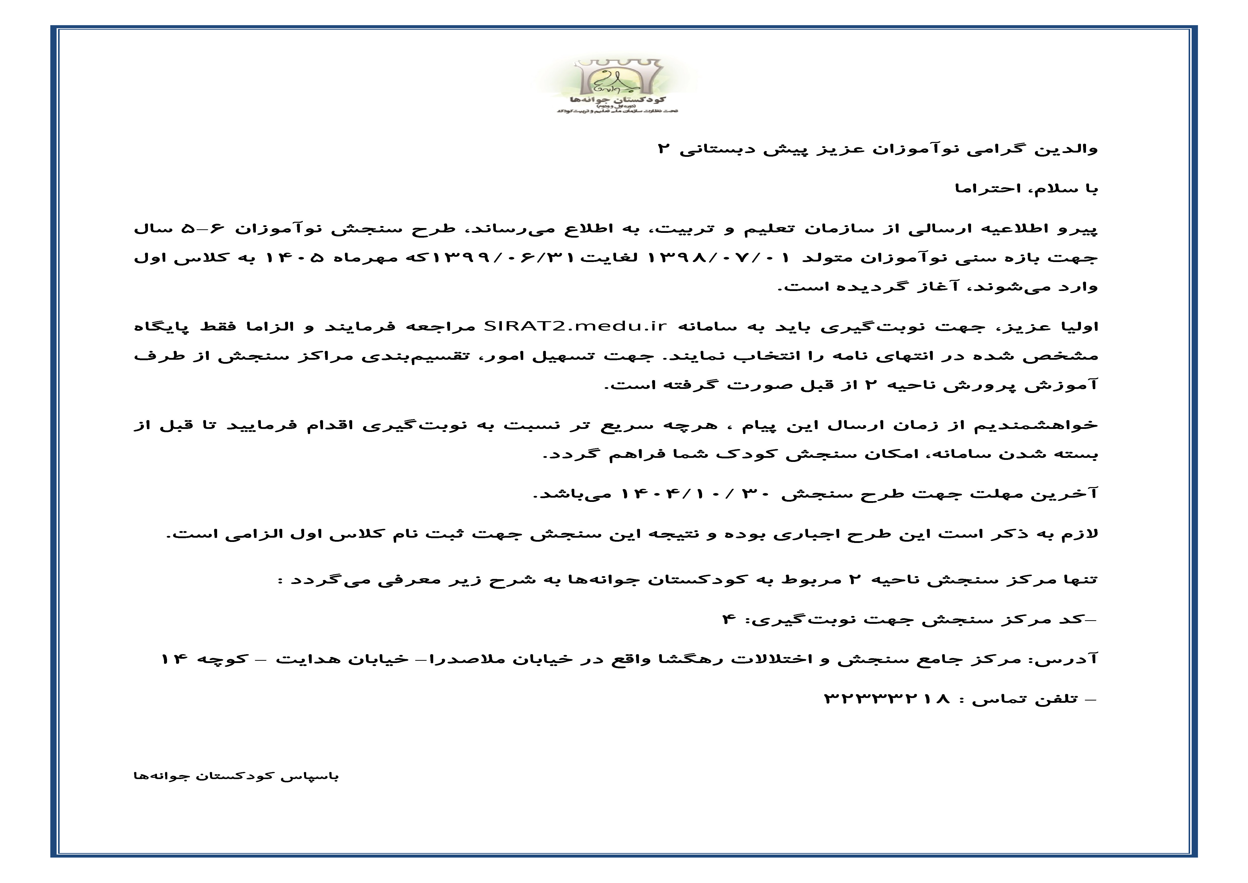 لطفا جهت بازدید از اطلاعیه جدید به پرتال فرزند خود مراجعه فرمایید